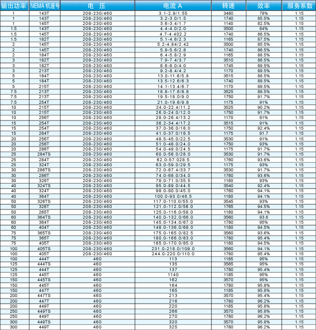 NEMA超高效電動(dòng)機(jī)型號: